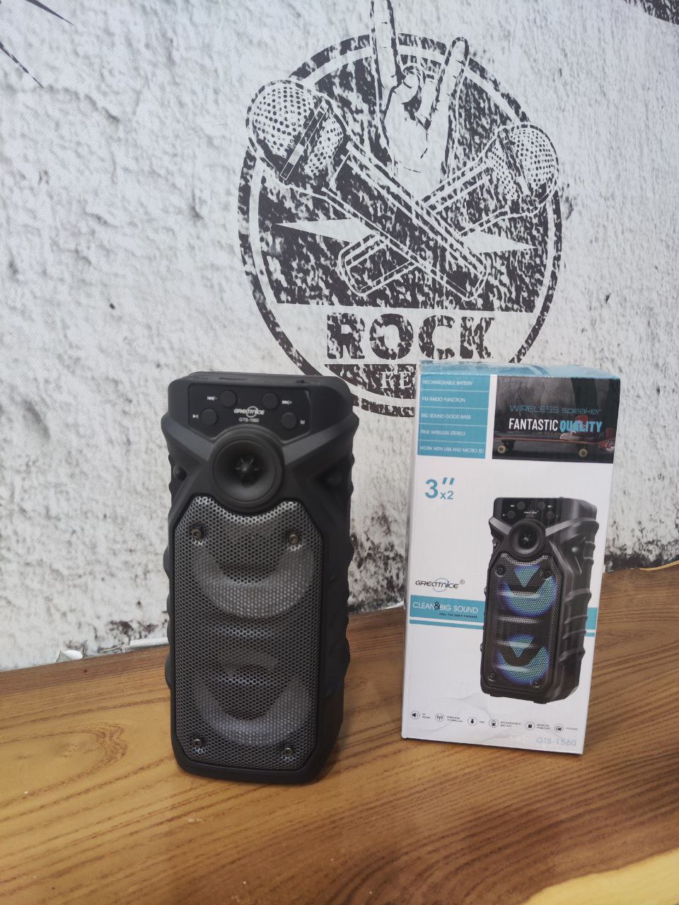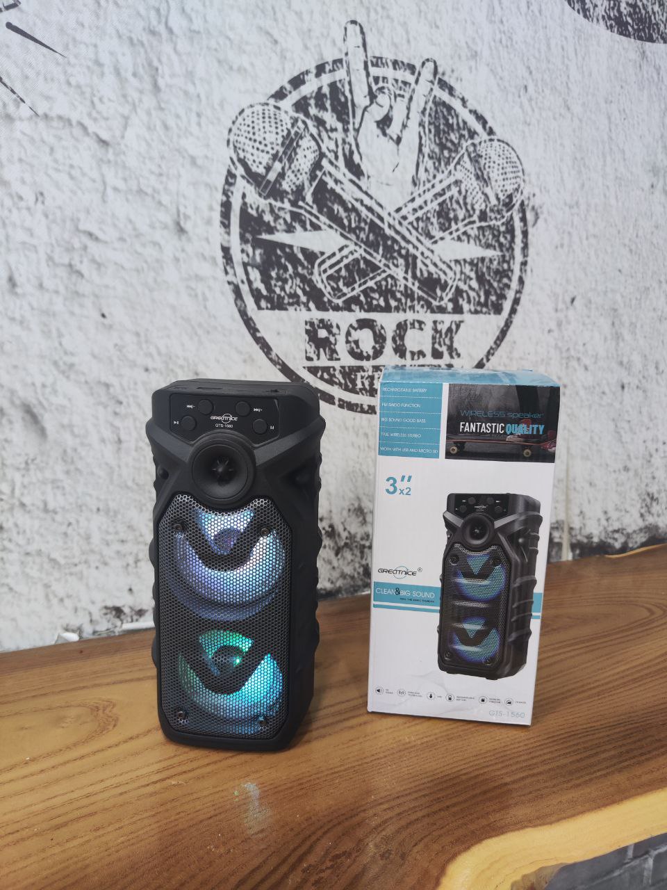 اسپیکر بلوتوثی قابل حمل GTS 1560 از برند گریت نایس (Great Nice) یک دستگاه چندمنظوره و خوش‌صدا برای پخش موسیقی در فضاهای باز و بسته است. این اسپیکر با طراحی استوانه‌ای عمودی، دو بلندگوی قدرتمند 3 اینچی، نورپردازی LED رنگی و قابلیت پخش از طریق کارت حافظه، USB و رادیو FM، انتخابی جذاب برای مهمانی‌ها و دورهمی‌ها به شمار می‌رود.