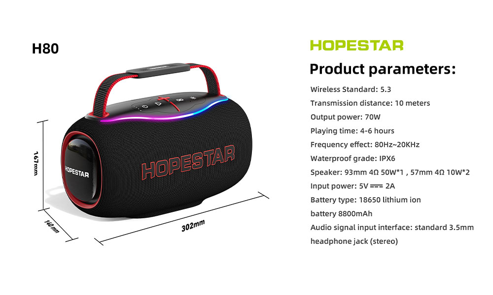 - هدف و مخاطب: Hopestar H80 برای کاربرانی طراحی شده که به دنبال تعادل خوب بین قدرت صدا، قابلیت حمل و مقاومت در برابر آب هستند. این دستگاه برای مهمانیهای متوسط در فضای باز، پیکنیک، سفرهای کوتاه و دورهمیهای دوستانه گزینهای مناسب است.
