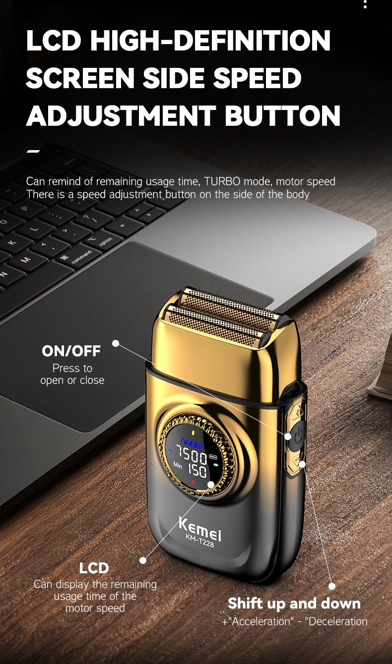 ریش‌تراش کیمی مدل KM-T228 یک شیور فویلی حرفه‌ای با قابلیت تنظیم سه سرعت و طراحی ضد آب است. این دستگاه با سیستم اصلاح فویلی و نمایشگر هوشمند، انتخابی ایده‌آل برای اصلاح کامل، سریع و بدون دردسر صورت محسوب می‌شود.
