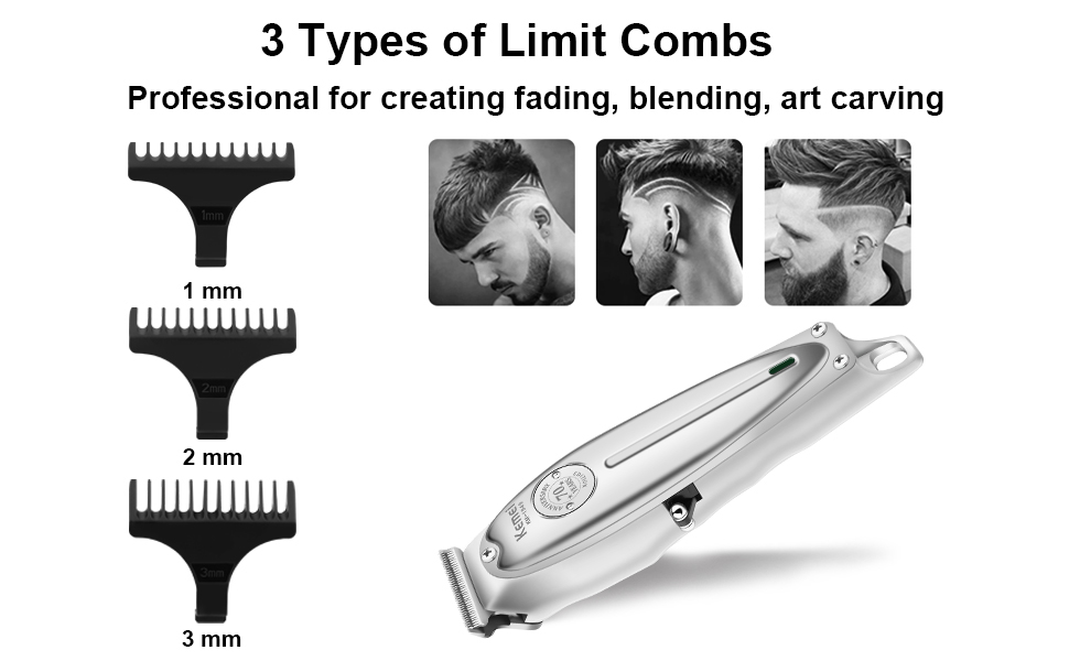 ⚙️ کیفیت ساخت و لوازم همراه: بدنه این دستگاه از فلز (استیل) ساخته شده که به دوام و احساس حرفهای آن میافزاید . از لوازم همراه میتوان به 3 عدد شانه راهنما (معمولاً سایز 1، 2 و 3 میلیمتر)، کابل شارژ USB، برس تمیزکننده، روغن مخصوص و درپوش محافظ تیغه اشاره کرد .