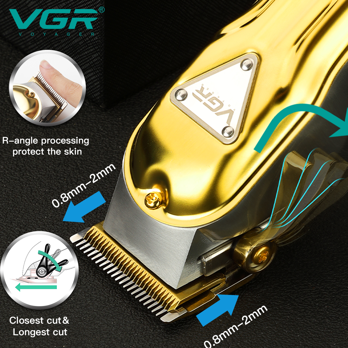 ماشین اصلاح VGR V-140 با تمرکز بر نیازهای کاربران حرفهای و خانگی طراحی شده است. بدنه فلزی این دستگاه در کنار ظاهر براق و طلایی رنگ، دوام بالایی دارد و در عین حال با وزن حدود ۲۰۰ تا ۵۰۰ گرم (بسته به منبع)، استفاده طولانیمدت از آن خستهکننده نیست .