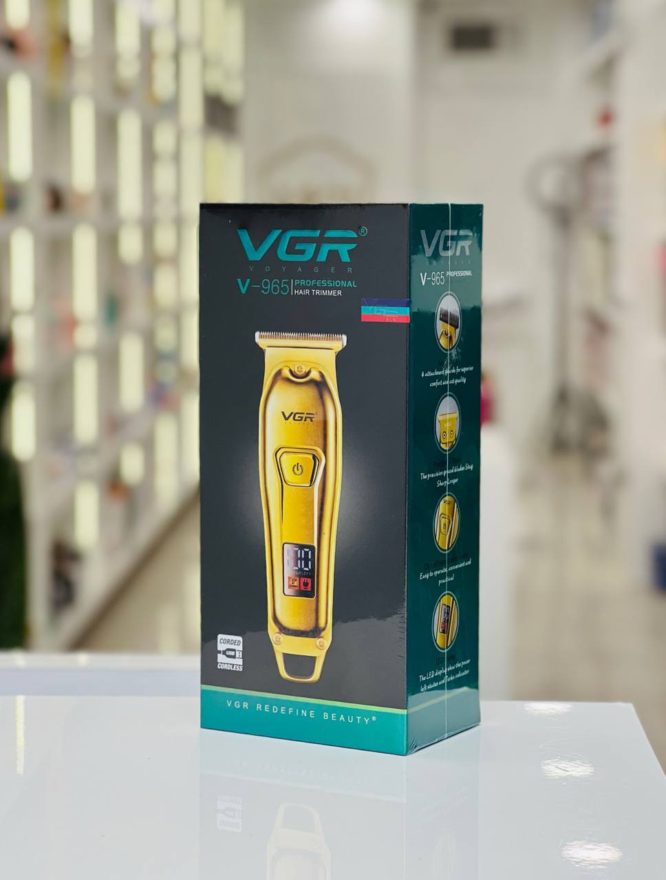 ماشین اصلاح VGR V-965 با تمرکز بر نیازهای کاربران حرفهای و خانگی طراحی شده است. بدنه فلزی این دستگاه با روکش طلایی رنگ، دوام بالایی دارد و وزن سبک آن (حدود ۱۳۷ گرم) استفاده طولانیمدت را خستهکننده نمیکند .