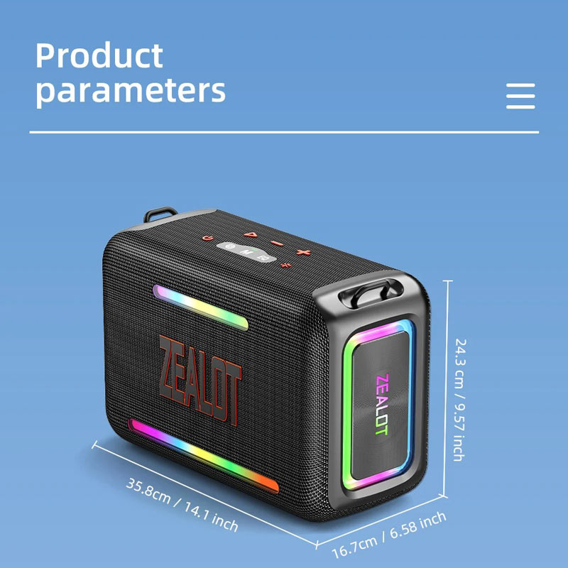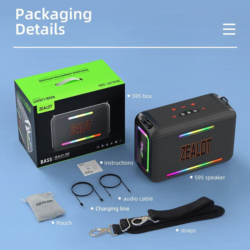 اسپیکر بلوتوثی Zealot S95 یک غول صوتی قابل حمل است که برای برپایی مهمانیهای پرشور و استفاده در فضای باز طراحی شده است. این مدل با ترکیب قدرت صوتی بسیار بالا، باتری با دوام استثنایی و قابلیتهای ارتباطی گسترده، انتخابی ایدهآل برای تبدیل هر جمعی به یک رویداد بهیادماندنی است .